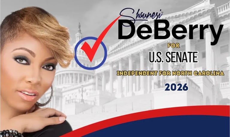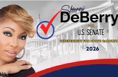 Shaunesi brings over twenty years of digital solutions expertise to assure North Carolina Residents have a comprehensive understanding and voice at the table; and in the judiciary. Candidate DeBerry insist an urgency to common sense politics be brought to the 2026 elections cycle beyond the unnecessary division created by the two -party system.