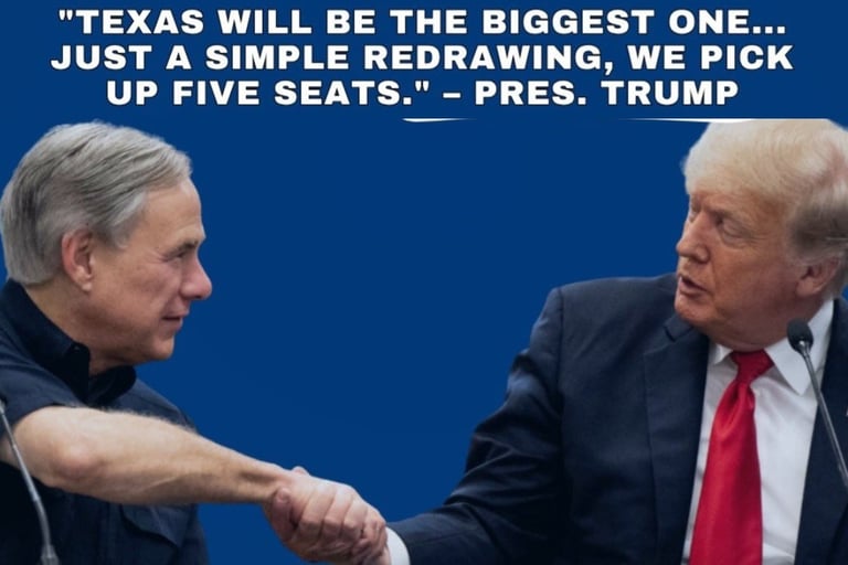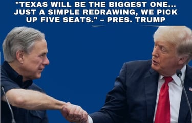 The President fears the MAGA House of Representatives, (people so loyal to Trump they will be complicit to genocides and pedophilia), may loose as much as five (5) U.S. House seats in the 2026 elections. And The President plans to fix that now. The President seems to have a pattern of believing it is his role to asking (bullying) officials into getting his desired voting results.